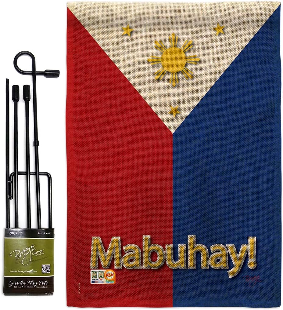 Nationality Beautiful Mini Garden Flag with Metal Garden Banner Pole Stand - Complete Set with Fansy Wall Bracket - 12" x 16" Power Coated Metal Flag HolderBreeze Decor have variety of Garden Flag Set for all occasions. Uniquely design for hanging indoor or outdoor use. We are committed to offering you exceptional values. Our customers enjoy displaying our Garden Flag Set for longer periods. Specification: Theme: Nationality Size: Garden Flag Set 13" x 18.5" Size: Metal Fansy Wall Bracket Print: Double-Sided Readable: Readable Single Side Material: Weather Resistant Polyester 300 D Stitching: Double Stitched Display: Vertical Hang Type: Sleeve Artist: Rick Bars Special Features: Origin: Made In USAPackage Include: 1 pc x Mini Garden Flag 13" x 18.5" 1 pc x Metal Yard Banner HardwareFor more than a decade, we’ve been dedicated to manufacturing flags with no comparison in quality and beautiful designs. Our flags are made with our Pro Guard material that is soft to the touch and designs can be read correctly on the flag. A feature that our customers will love. We are committed to using eco-friendly inks that won’t leave a foot print in our environment. MPN: BD-CY-GS-108097-IP-P3-03-S-US13-BD 08097 58097